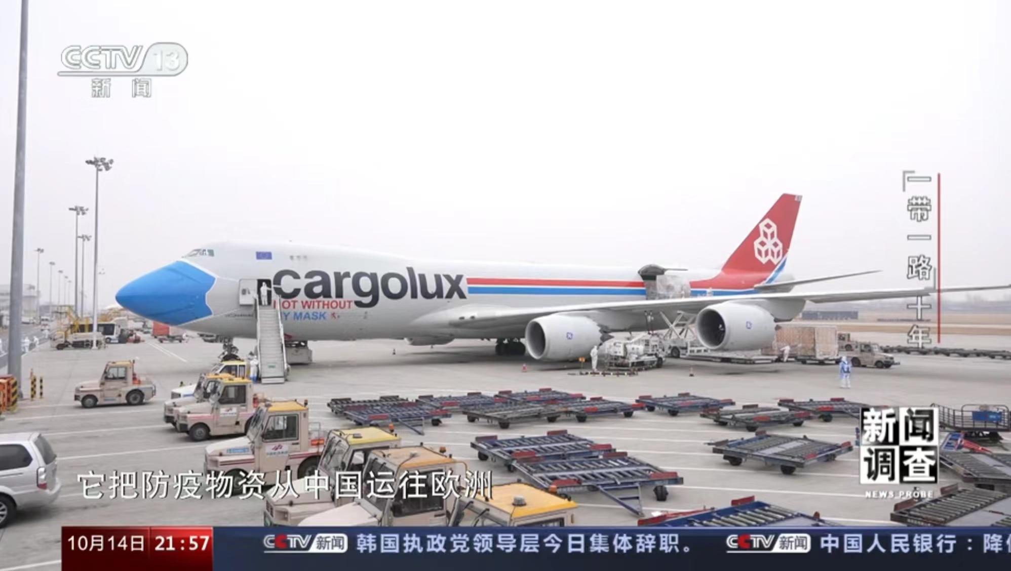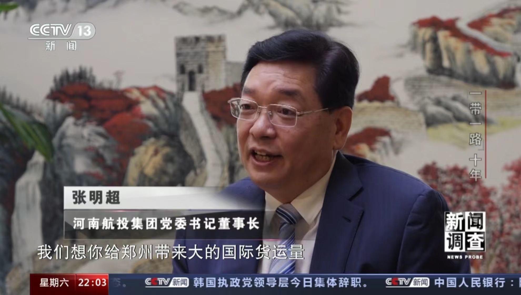 10月11日,央視《焦點訪談》播發系列報道“絲路同行”第一集——雙向奔赴的繁榮之路。報道中說,“一帶一路”倡議的提出,讓河南明確了突破區位限制、向藍天要效益的開放思路。通過采訪河南航投集團黨委書記、董事長張明超和盧森堡貨航董事會主席湯姆·維斯格伯、總裁兼CEO理查德·福森,報道回顧了鄭盧“空中絲綢之路”十年探索實踐和豫盧之間的友好情誼。節目評論道:“(河南航投與盧森堡貨航)之間早已超越了生意伙伴這一簡單的關系,多年的合作讓鄭州與盧森堡兩個航空樞紐之間的互聯互通真正實現了彼此雙方互利共贏和美美與共。這一切都在詮釋著‘一帶一路’倡議的核心要義。”
