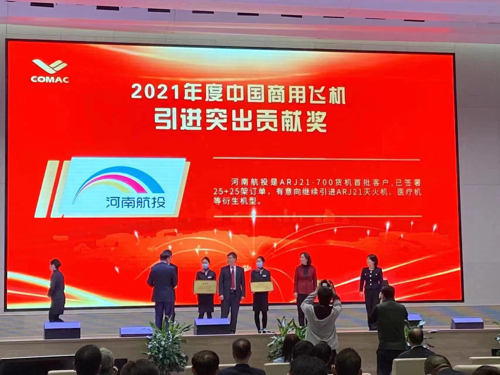 10月26日,中國商飛2022年度客戶大會(huì)在嘉興召開。會(huì)上頒發(fā)了第一屆中國商用飛機(jī)“翱翔獎(jiǎng)”。由中國商飛黨委書記、董事長賀東風(fēng)為河南航投頒發(fā)“翱翔獎(jiǎng)—— 2021年度中國商用飛機(jī)引進(jìn)突出貢獻(xiàn)獎(jiǎng)”,這是中國商飛首次將國產(chǎn)商用飛機(jī)相關(guān)獎(jiǎng)項(xiàng)授予河南本土企業(yè),對(duì)國產(chǎn)貨機(jī)進(jìn)一步拓展市場具有重要意義。