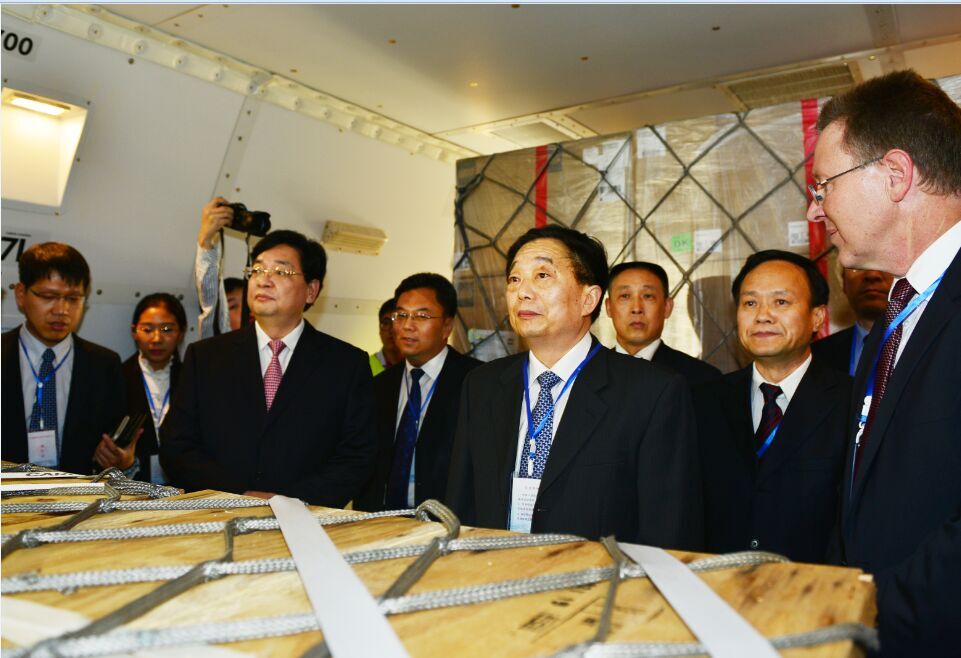 出席盧貨航45周年慶祝儀式的有河南省副省長李亞、省長助理安惠元、省政府副秘書長馬剛。河南航投董事長、黨委書記張明超,總經理、副董事長、黨委副書記劉建葆,公司領導班子其他成員及相關業務負責人參加了慶祝儀式。適逢盧貨航2015年全球經理人大會在鄭州召開,前來參會的50多位來自全球各個地區的區域經理和重要部門負責人與中方人員一起,在鄭州機場見證了這一具有歷史意義的時刻。現場工作人員向機組人員獻上鮮花,隨后,雙方代表登機視察。