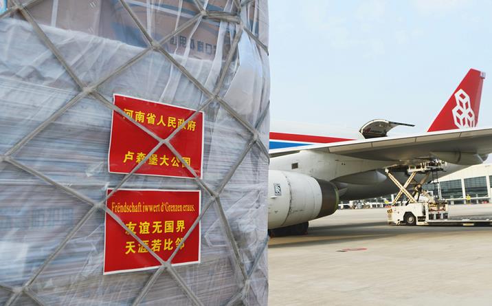 2020年2月,疫情爆發(fā)初期,盧森堡貨航和河南航投共同積極加入抗“疫”戰(zhàn)斗,除了為中國員工提供口罩、消毒棉片、防護服等物資支援外,還在原定的春節(jié)假期期間,加運了95噸醫(yī)療物資馳援中國抗“疫”一線,并根據(jù)國內(nèi)外市場的需要有序增加運力。當年3月,河南省委、省政府為盧森堡緊急籌措了包括4500件醫(yī)用防護服、50萬只醫(yī)用外科口罩、5700只醫(yī)用N95口罩、10萬雙醫(yī)用手套、600只額溫槍、2萬瓶洗手液、1080副醫(yī)用護目鏡等在內(nèi)的首批醫(yī)療物資,并通過鄭州—盧森堡貨運航班直接運抵盧森堡。鄭盧“空中絲綢之路”被盧森堡政府譽為“盧森堡及其他歐洲地區(qū)的生命線,是一條雪中送炭的空中橋梁。”在這條絲路的連接下,豫盧雙方成為共建共享、休戚與共的“一家人”。