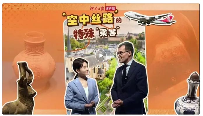 從2013年至今,鄭盧“空中絲路”的建設(shè)在兩國(guó)元首的關(guān)注下取得豐碩成果。從兩家企業(yè)的投資合作,發(fā)展到中盧之間的商貿(mào)往來(lái)、綠色能源、客運(yùn)旅游、人文交流等各方面。2018年,河南航投與河南省文物局簽署合作意向書(shū),根據(jù)約定,河南航投將提供航空運(yùn)輸便利,共同促進(jìn)河南文物的對(duì)外開(kāi)放和交流、促進(jìn)兩地民心相通,由鄭盧“空中絲路”保障了河南文物從鄭州抵達(dá)盧森堡。當(dāng)年11月在盧森堡開(kāi)展時(shí),米歇爾·波費(fèi)爾主持了開(kāi)幕式,河南航投與盧森堡貨航負(fù)責(zé)人一同出席,豫盧雙方在現(xiàn)場(chǎng)達(dá)成深化文化交流的意愿。